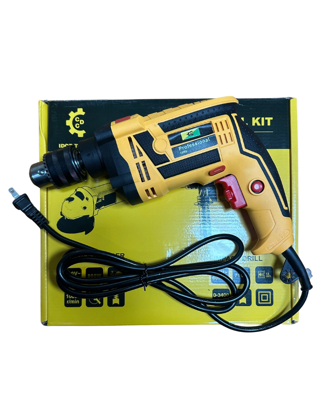 El taladro eléctrico cuenta con un diseño ergonómico y resistente, ideal para perforar madera, metal y plástico, además de atornillar con precisión. Su empuñadura antideslizante brinda mayor control y comodidad durante el uso prolongado.