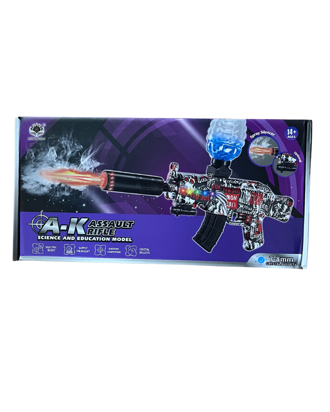 Funciona con bolas de gel hidratables, las cuales se desintegran al impacto, ofreciendo un juego más limpio y seguro. Cuenta con sistema eléctrico recargable, lo que permite un disparo continuo y estable durante las partidas.